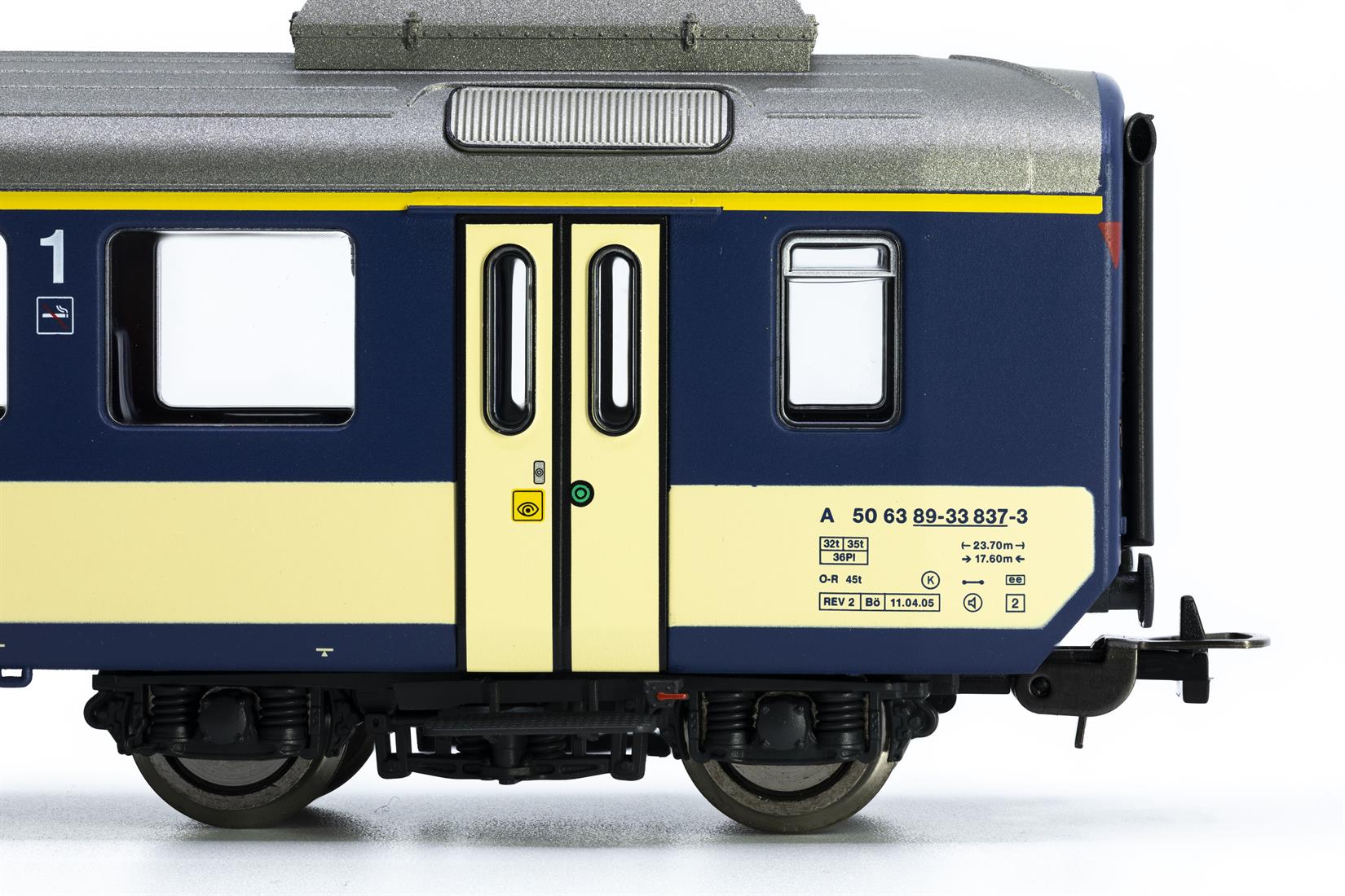 Beide Modelle haben als Vorbild den 1.Klassewagen (ex B) in der Speziallackierung mit Aussenschwingtüren und neuer Beschriftung und den gemischten 1./2.Klassewagen in der Standartlackierung mit blauen Falttüren und Wortmarke.