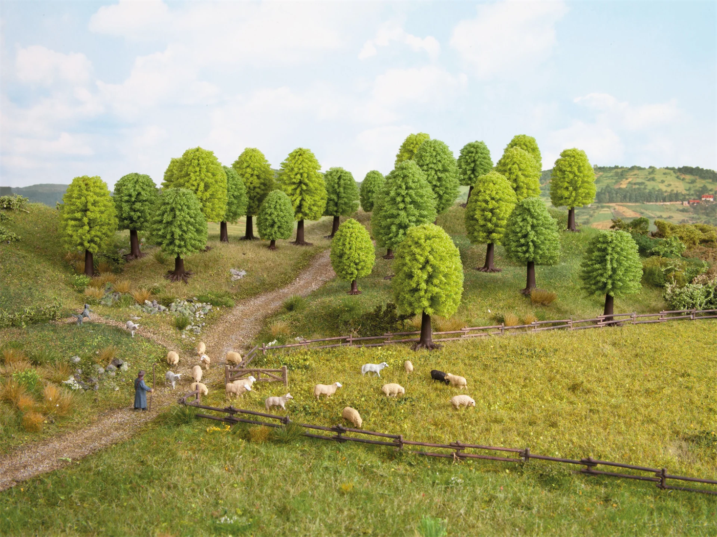 Die "Laubbäume" eignen sich ideal, um hochwertige Landschaftsszenen in einer Modelllandschaft realgetreu nachzugestalten. Wälder gibt es in der realen Natur sehr viele und auch auf einer Modelllandschaft dürfen diese nicht fehlen. Ob Laubbäume, Tannen, Fichten, Lärchen oder mediterrane Bäume - die unterschiedlichsten Baumarten lassen eine Landschaftsszene noch wirklichkeitsgetreuer und idyllischer wirken. Die Waldtiere suchen Schutz unter den hohen Bäumen und die Menschen spazieren bei schönem Wetter durch den dichten Wald. Gestalten Sie mit den "Laubbäume" unter den Standard-Bäumen idyllische Naturszenen nach und sorgen Sie für einen echten Hingucker auf Ihrer Anlage.