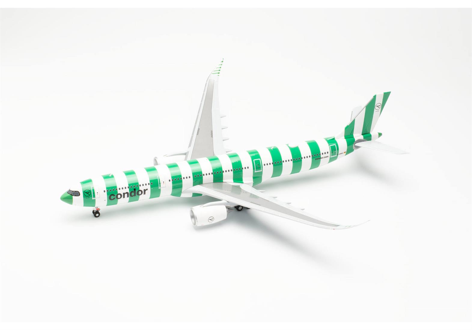 Ursprünglich im Jahre 1955 als Deutsche Flugdienst GmbH mit Beteiligung von Lufthansa gegründet, wechselte sie nach der Übernahme der Condor Luftreederei des Lebensmittelkonzerns Dr. Oetker sechs Jahre später den Namen in Condor Flugdienst. Als Lufthansa-Tochter blieb das Erscheinungsbild der Condor über vierzig Jahre lang nahezu konstant. Nachdem sie Teil der Thomas Cook Group wurde, entstand 2002 die neue Marke „Thomas Cook powered by Condor“. Es folgten weitere Übernahmen von Anteilen und immer wieder Variationen der Bemalungen, bis der britische Vermögensverwalter Attestor 2021 eine Anteilsmehrheit übernahm. Mit diesem Finanzinvestor ist Condor erstmals seit Jahrzehnten nicht mehr an einen Reiseveranstalter gebunden. Um sich als ein eigenständiges Unternehmen zu präsentieren, stellte Condor am 4. April 2022 eine neue Bemalung mit Längsstreifen in fünf verschiedenen Farben vor, die an das typische Design von Badetüchern, Strandliegen und Sonnenschirmen erinnern soll. Im Dezember 2022 wurde D-ANRA mit ihren grünen Streifen als erste von 18 bestellten A330-900neo ausgeliefert. Bereits im Laufe von 2024 sollen sie die Flotte der Boeing 767-300 auf der Langstrecke ersetzen. Diese modernste Variante der A330 stellt die 767 in jeder Beziehung in den Schatten und zeichnet sich unter anderem durch niedrigeren Treibstoff-Verbrauch und einer 20%igen Reduzierung der CO2-Emissionen aus. Die außergewöhnliche Bemalung erregt weiterhin Aufmerksamkeit nicht nur in der Diskussion, sondern auch auf dem Vorfeld der Flughäfen.