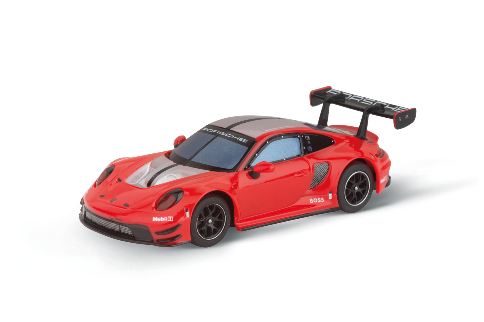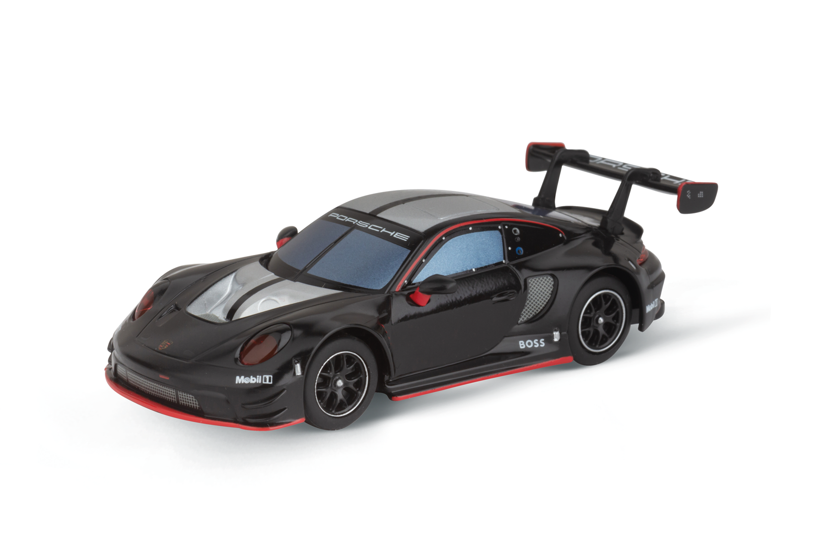 Der Carrera Hybrid - Porsche 911 GT3 R "Black Devil" im Maßstab 1:50 verkörpert die Essenz der Marke Porsche. Das schwarze Modell fasziniert nicht nur durch sein Design, sondern auch durch sein lebensechtes Fahrverhalten. Mit seiner auf den Maßstab angepassten Geschwindigkeit und dem realistischen Kurvenverhalten liefert der "Black Devil" ein authentisches Rennerlebnis. Mit einer Ladezeit von nur 20 Minuten bietet der Akku bis zu 30 Minuten puren Fahrspaß. Der "Black Devil" ist eine perfekte Fusion aus Tradition und fortschrittlicher Technologie, ideal für Rennsportfans und Liebhaber von Porsche.