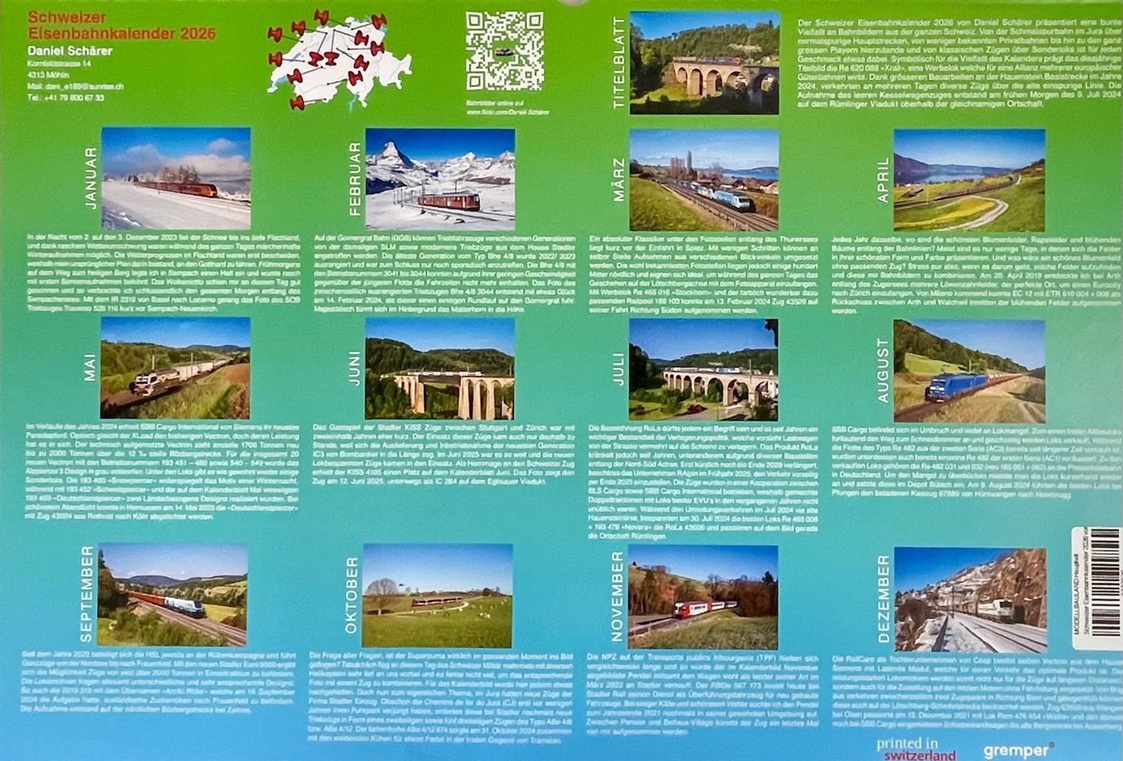Schweizer Eisenbahnkalender 2026 von Daniel Schärer