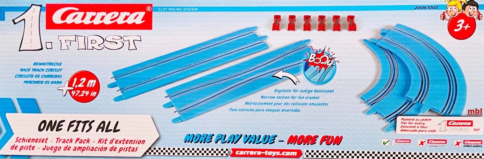 „One Fits All“ Schienenset – das ideale Erweiterungsset für deine Carrerabahn! Enthält zwei Geraden, eine Engstelle und drei Kurven – perfekt kompatibel mit Carrera FIRST Slotcar-Systemen. Für abwechslungsreiche Streckenführungen, spannende Überholmanöver und actiongeladenen Fahrspaß. Einfach kombinieren, schnell aufgebaut, grenzenloser Rennspaß für kleine Rennfahrer!