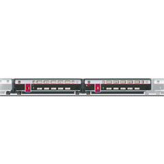 2-teiliges Ergänzungswagen-Set zur Erweiterung des Hochgeschwindigkeitszuges TGV INOUI, Artikel 37798, auf eine 10-teilige Einheit. Serienmäßig eingebaute Innenbeleuchtung mit wartungsfreien warmweißen Leuchtdioden (LED). Innenbeleuchtung wird versorgt über die durchgehende elektrische Verbindung des ganzen Zuges. Beide Mittelwagen sind fest miteinander gekuppelt. Kulissenführung in den Jakobs-Drehgestellen. Maßstäbliche Nachbildung, daher befahrbarer Gleisbogen ab Mindestradius 360 mm bei freiem Lichtraum.