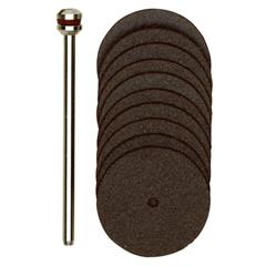 Korund-gebundene Trennscheiben. Gefertigt mit einem Spezialbindemittel. Scheiben Ø 22 mm bzw. 38 mm und 0,7 mm dick. Zum Trennen von legierten und unlegierten Stählen, Edelstählen und NE-Metallen. Aber auch verwendbar zum Schneiden von Holz und Kunststoff. Schaft Ø 2,35.