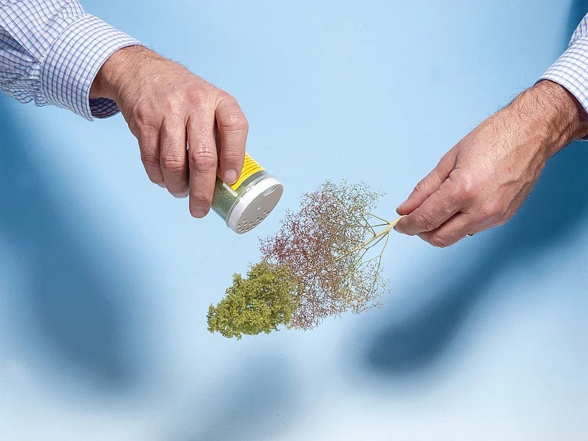 Das beliebte NOCH Laub ist ein sehr fein geschnittenes, spezielles Belaubungsmaterial. Die einzelnen Blätter haben eine täuschend echte Blattform. Es eignet sich hervorragend, um Bäume oder Büsche zu beflocken oder um Efeu, Bodendecker und Laubwaldböden zu gestalten.