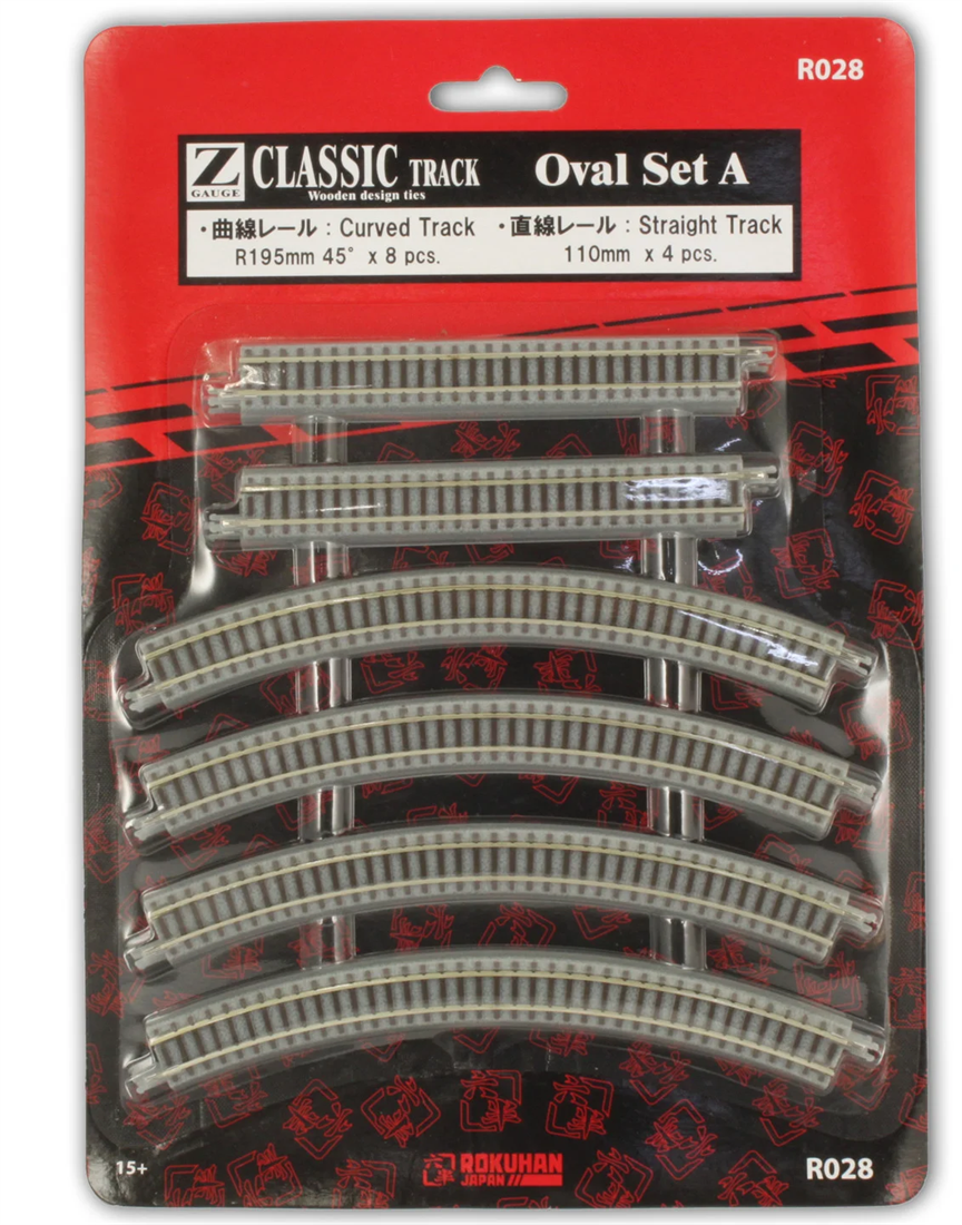 Rokuhan R028 Einfaches Kreis-Oval R195 mm-45° (8 Stk.) + gerade 110 mm (4 Stk.) - Art.Nr. 97028