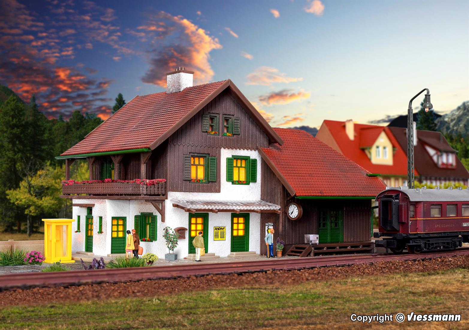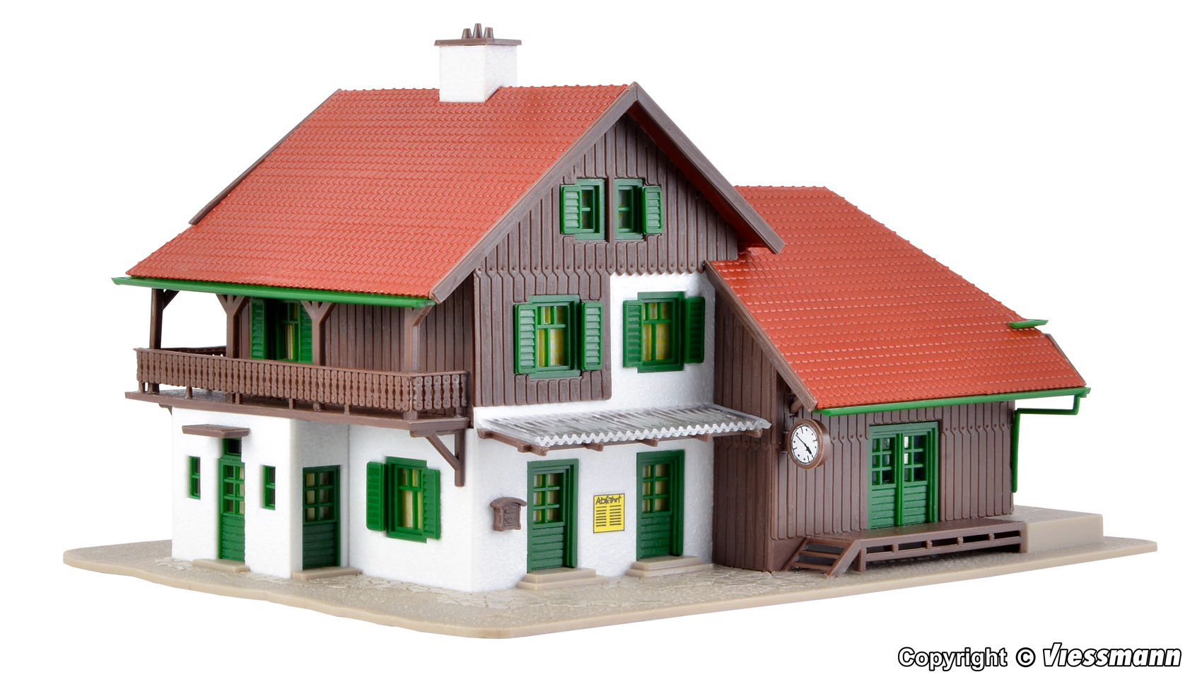 Dieser Bahnhof eignet sich besonders für mittlere und kleine Modellanlagen. Beim Betrachten dieses typischen Gebirgsbahnhofs kommt Ferienstimmung auf.