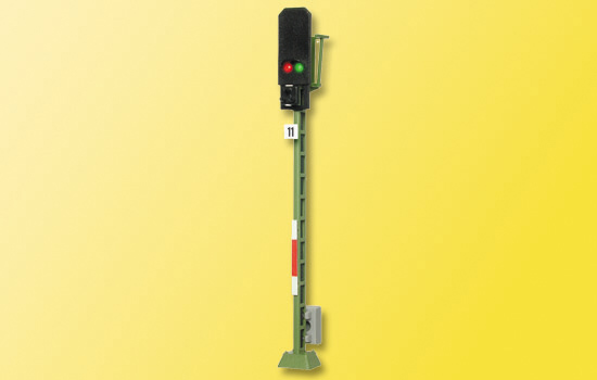 Signal der Einheitsbauart. Messingmast in filigraner Fotoätztechnik hergestellt. Originalgetreue Lackierung. Für alle Analog- und Digitalsysteme geeignet. Mit Steckfuß. Sehr einfache Montage, sehr einfacher Anschluss. Mit 2 LEDs, wartungsfrei. Signalbilder Hp0 und Hp1.
