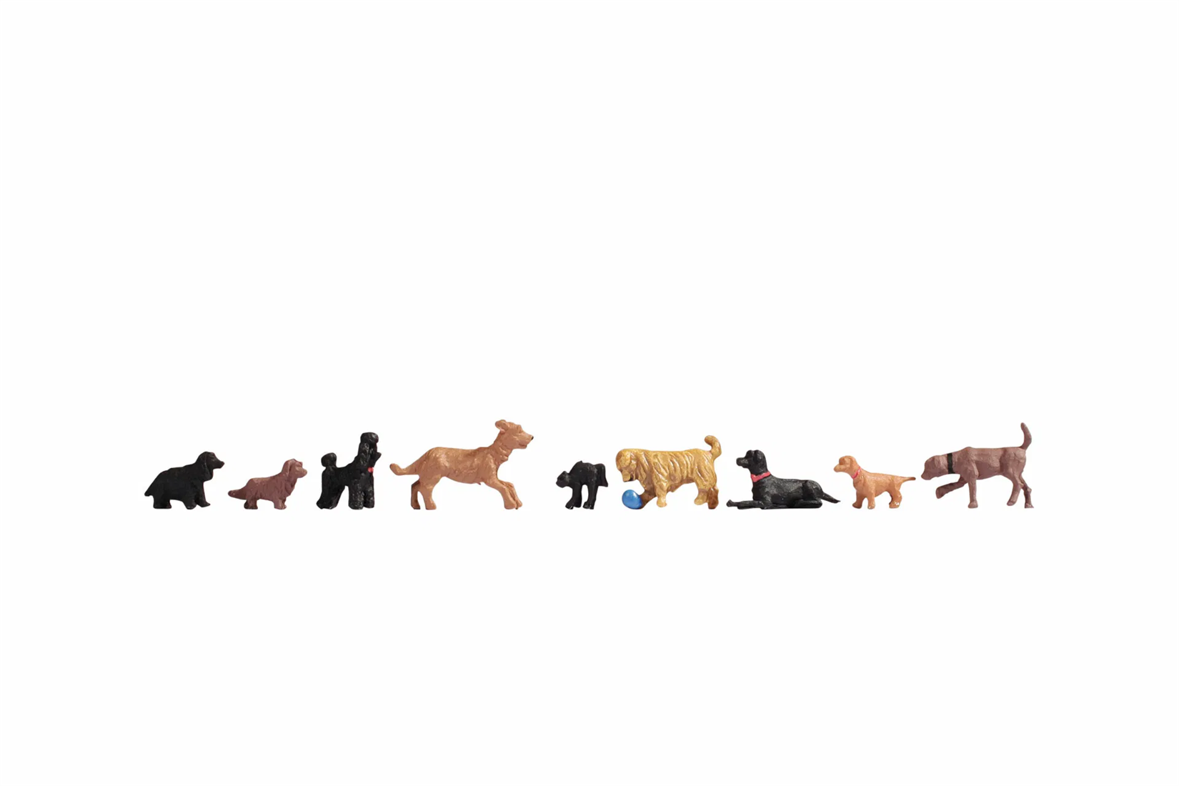 Das NOCH "Hunde"-Set ist die perfekte Ergänzung für Ihre Modellbahnanlage oder Ihr Diorama. Mit insgesamt neun handbemalten Hunden (Maßstab 1:87 (H0),ca 2 cm hoch) sorgt es für eine lebendige und realistische Atmosphäre in Ihrer Miniaturwelt.