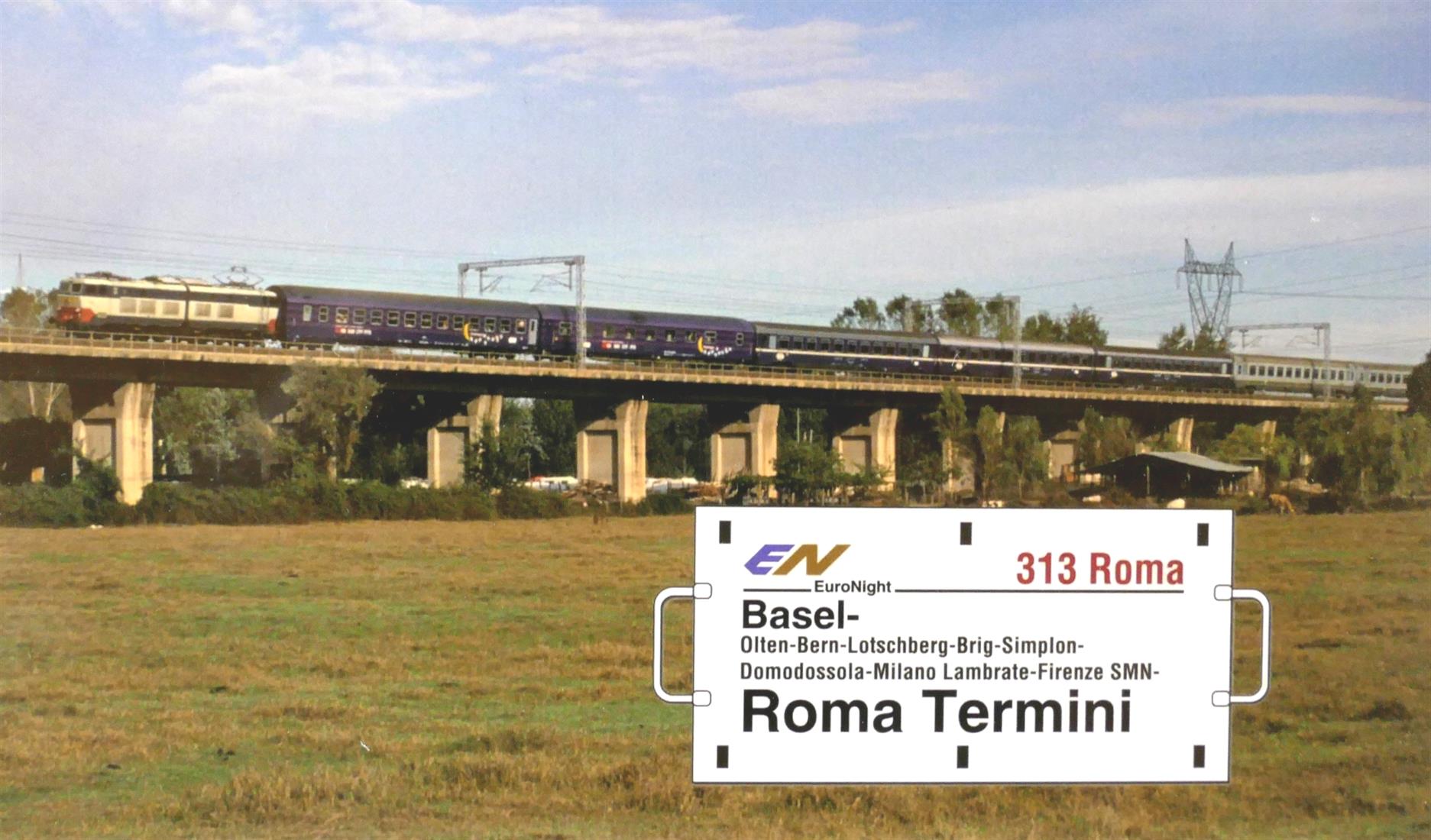 Vierteiliges Wagenset EuroNight "Roma", eingesetzt zwischen Basel, Genf und Rom bis Anfang der zweitausender Jahre, Epoche V.