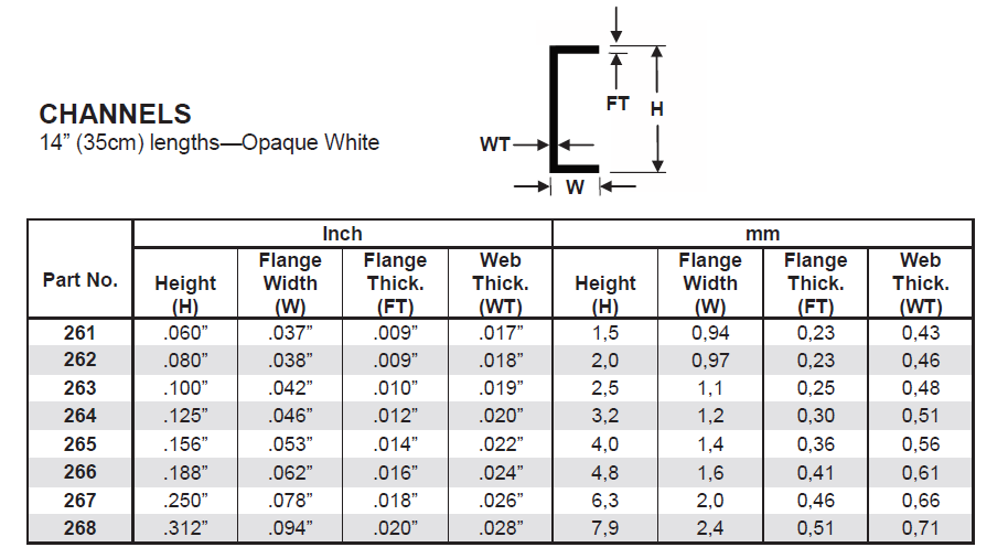 Evergreen U-Profil, 350 x 2,5 x 1,1 mm, 4 Stück - Art.Nr. 263