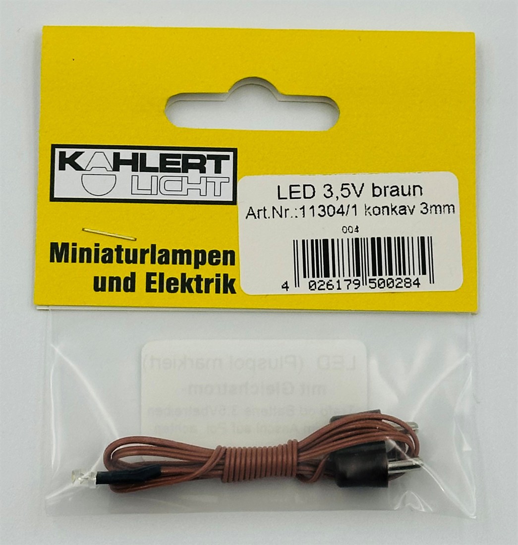 Kahlert 11304 LED, 3 mm mit braunem Kabel und Stecker 3,5V, leuchtet warm-weiss