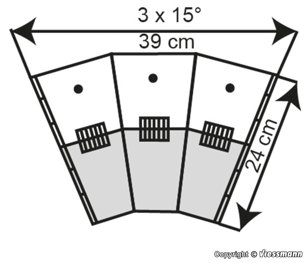 L 24,0 x B 39,0 x H 15,0 cm / Winkel der Lokstände 15°