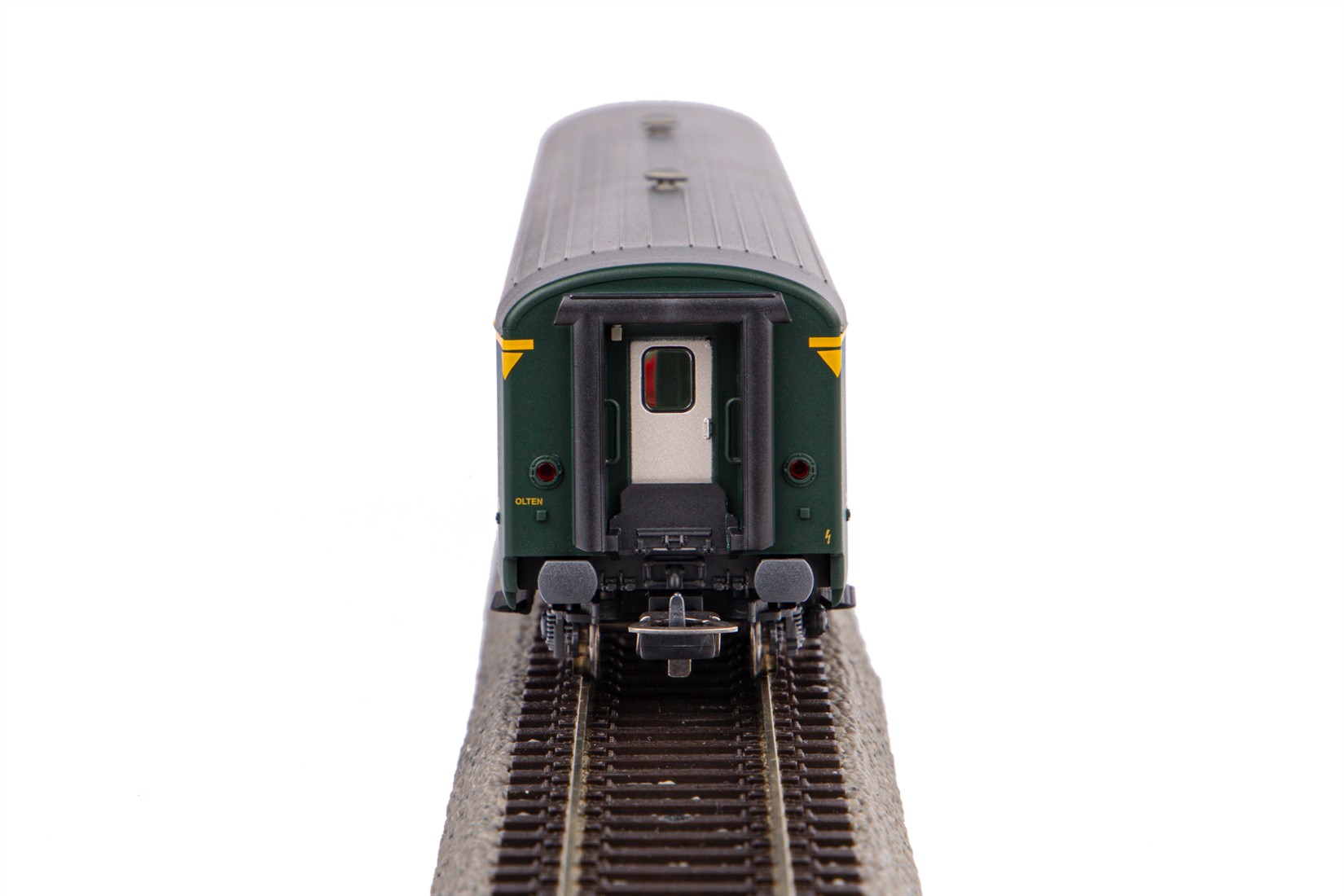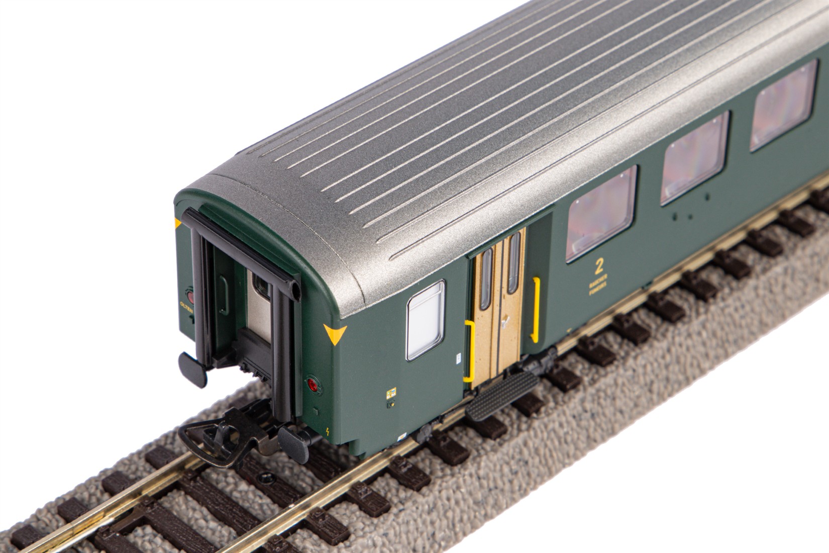 Druckvariante des Einheitswagens als 2. Klasse Wagen im Design der SBB in der Epoche IV mit alter Schrift.