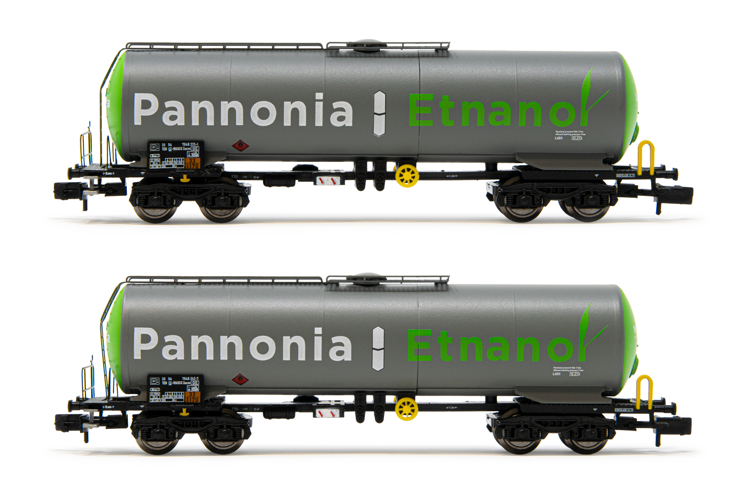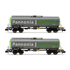 Wascosa, 2-tlg. Set 4-achs. Kesselwagen "Pannonia Ethanol", in grauer und grüner Lackierung, Ep. VI