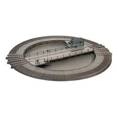 DB-Einheitsbauart 23 m. Für konventionellen und digitalen Fahrbetrieb geeignet. Ferngesteuerte Drehbühne mit eingebautem Motor. Ausschließlich digitale Steuerung mit Mobile Station 2 und Central-Station 2 und 3 (nicht beiliegend). Besonders komfortable Steuerung mit der Central-Station 2 und 3 mittels Gleisvorauswahl oder mit diversen Digital-Zentralen mit dem Digital-Format DCC. Funktion: Drehen rechts/links Grube zum versenkten Einbau in die Anlage. 6 Gleisanschlüsse für C-Gleise zum Einsetzen an beliebiger Stelle. Abgangswinkel im C-Gleis-Rastermaß von 12°. Mit Übergangsgleis 24922 zum K-Gleis und mit Übergangsgleis 24951 zum M-Gleis verwendbar. Ausbaubar auf max. 30 Gleisanschlüsse im Raster von 12° mit Erweiterung 74871. Separate Stromversorgung der Abgangsgleise notwendig. Außendurchmesser mit je einem Abgang gegenüber 378 mm. Durchmesser der Grube ohne Abgangsgleise 278 mm. Bühnenlänge 263 mm. Passend zum Ringlokschuppen 72887. Diverse schaltbare Soundfunktionen. Drehscheibenwärterhaus und Außenleuchte mit LED beleuchtet, schaltbar. Neue Farbgebung gegenüber der bisherigen Drehscheibe 74861, z.B. "Blindstutzen" in der Farbgebung des C-Gleise mit zusätzlicher Darstellung der Holzbohlen.