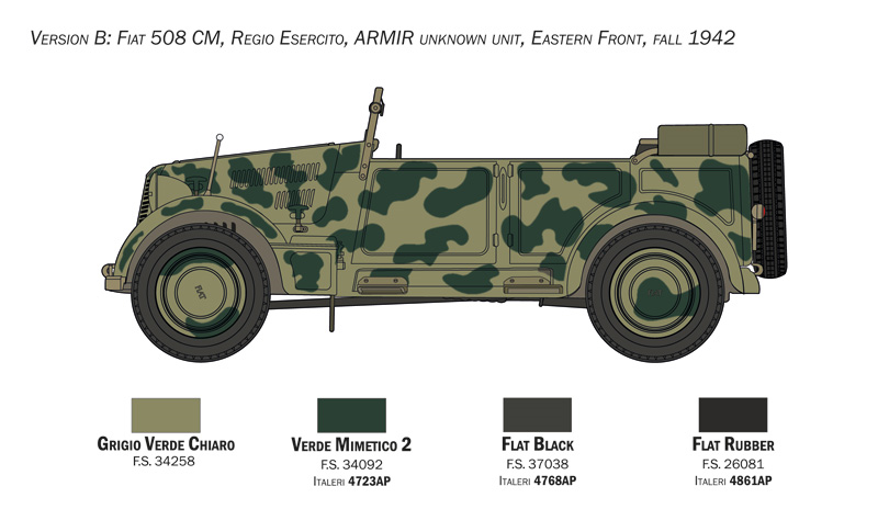 Der Fiat 508 "Balilla" ist das beliebteste Auto, das in den dreißiger Jahren in Italien hergestellt wurde. Im Juni 1937 wurde der neue "Balilla" 508C, ausgestattet mit einem 4-Zylinder-Motor von 1.100 cm³, auf den Automobilmarkt gebracht. Darüber hinaus wurde der neue 508C als Plattform für die Entwicklung von Fahrzeugen für militärische Anwendungen wie dem Fiat 508 CM "Coloniale" verwendet. Gekennzeichnet durch eine Traktion mit 2-Rad-Antrieb, eine Länge von 3,6 Metern und den zuverlässigen 1.100 ccm 4-Zylinder-Motor, der 32 PS liefern kann, die es ihm ermöglichten, 90 km / h zu erreichen, wurde der Fiat "Coloniale" insbesondere für die Mobilität von Offizieren und für HQ-Operationen in Nordafrika eingesetzt. Die Gesamtstärke des Fahrzeugs, die größere Größe der Reifen und die gute Zuverlässigkeit der Mechanik hatten den Fiat "Coloniale" jedoch für fortgeschrittene Aufklärungsaufgaben im Gelände geeignet gemacht.