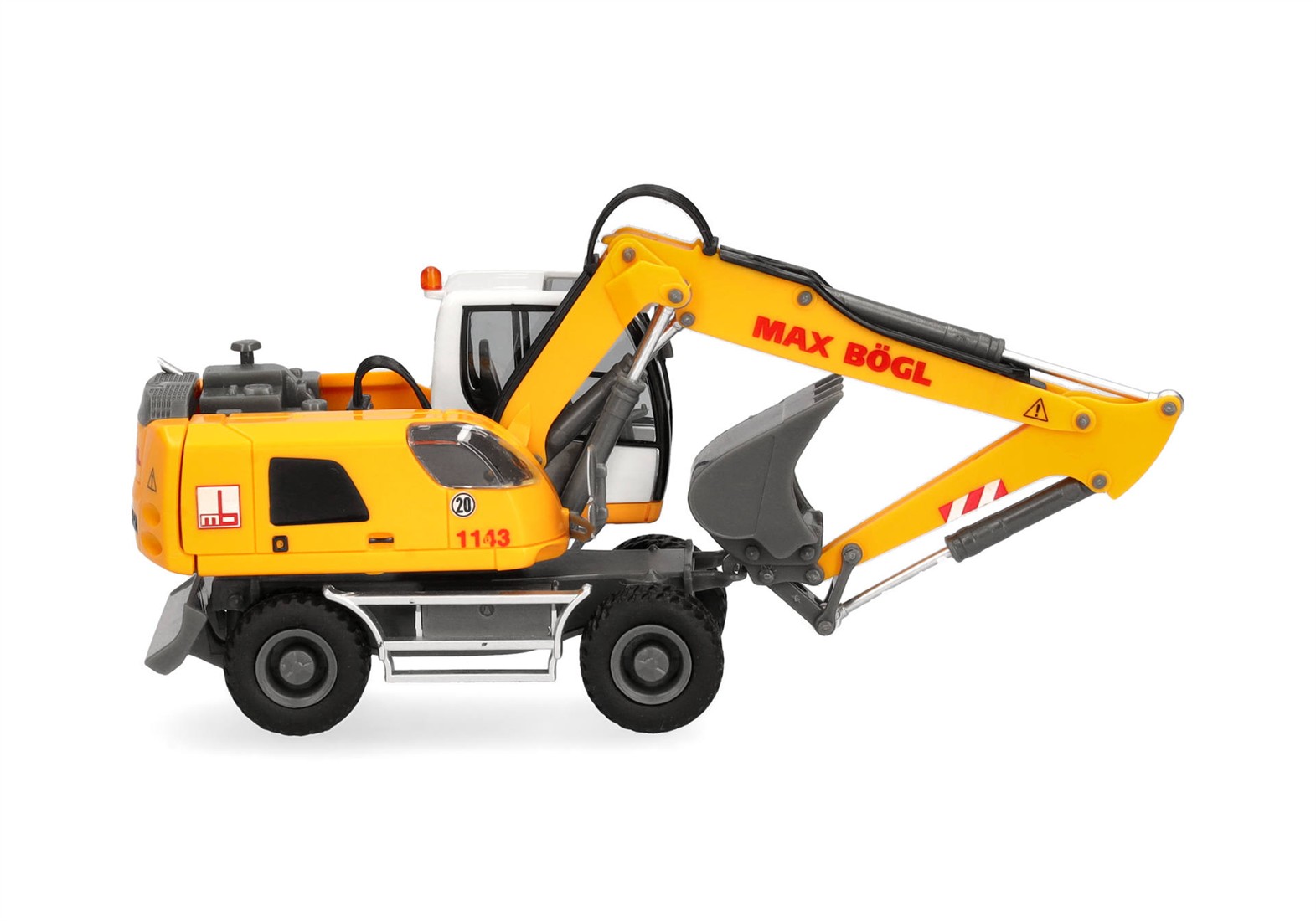 Fast 50 Modelle sind bisher in Zusammenarbeit mit Max Bögl aus Sengenthal von Herpa in Miniatur umgesetzt. Mit diesem Liebherr Mobilbagger A940 erscheint mal wieder eine Baumaschine. Was Firmengründer Max Bögl 1929 mit einem Maurerbetrieb begann (und bereits fünf Jahre später 40 Beschäftigte und den ersten fahrenden Betonmischer im Landkreis Neumarkt unterhielt), erweiterte Max Bögl Junior 1955 um die Bereiche Straßen- und Kanalbau und der Anschaffung eines ersten Seilbaggers (Fabrikat Unibag). 1973 übernahmen die Söhne Max und Hans den Betrieb, während nur ein Jahr später der Firmengründer mit dem Bayerischen Verdienstorden geehrt wurde. Heute hat das Unternehmen über 6.500 Beschäftigte an 49 Standorten weltweit und bildet in rund 25 Berufen eigene Arbeitskräfte aus.