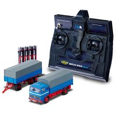 Ein Genuss für alle Kraftfahrer: Der MB 1620 mit Plane und Anhänger im H0 Format verleiht jeder Miniaturwelt besonders coolen Nostalgiecharme. Absoluter Hingucker des kleinen Modells sind die LED-Beleuchtungen an Front und Heck des Fahrzeugs. Durch die originale MB Lizenz, die detaillierte Karosserie und Lackierung, und voll proportionaler Lenkung und Geschwindigkeit kommt der kleine Nachbau sehr nah an das reale Vorbild ran. Mit dem Sender lässt sich ein Motorensound steuern und das Fahrzeug komplett aufladen. Im Führerhaus der Zugmaschine sitzt eine kleine Fahrerfigur, die Plane des Hängers lässt sich abnehmen. Voll geladen sind mit dem Mercedes unter voller Auslastung ganze 60 Minuten Fahrspaß garantiert.