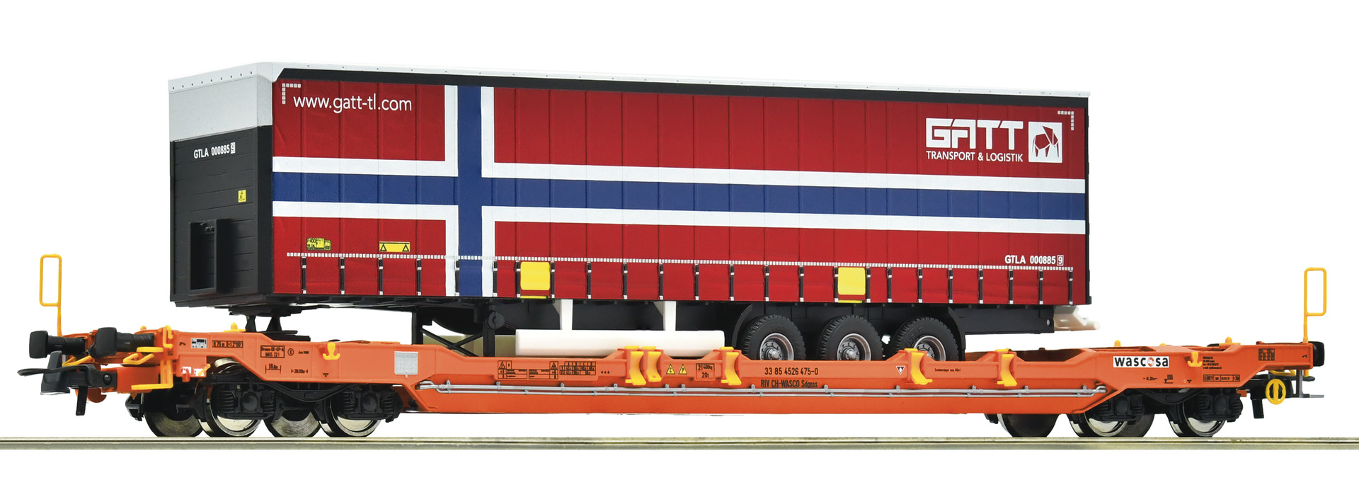 Roco 6600108 Taschenwagen, Sdgnss/T5 der Wascosa mit Auflieger der Spedition GATT - H0