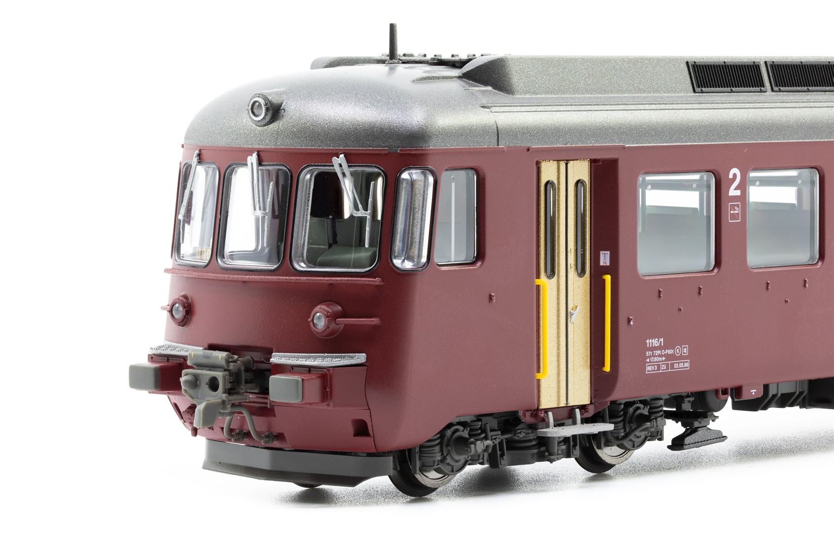 - Vorbildgerechte drei statt vier Dachwiderständen auf dem Mittelwagen.