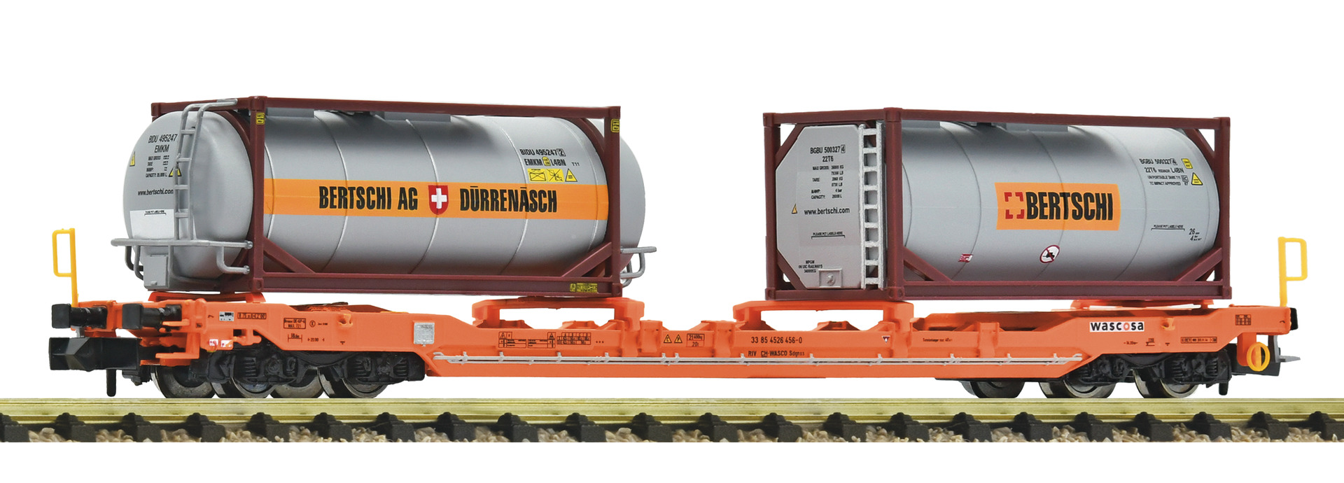 Fleischmann 6660136 Taschenwagen T5, Wascosa mit Tankcontainern der Spedition Bertsch - N