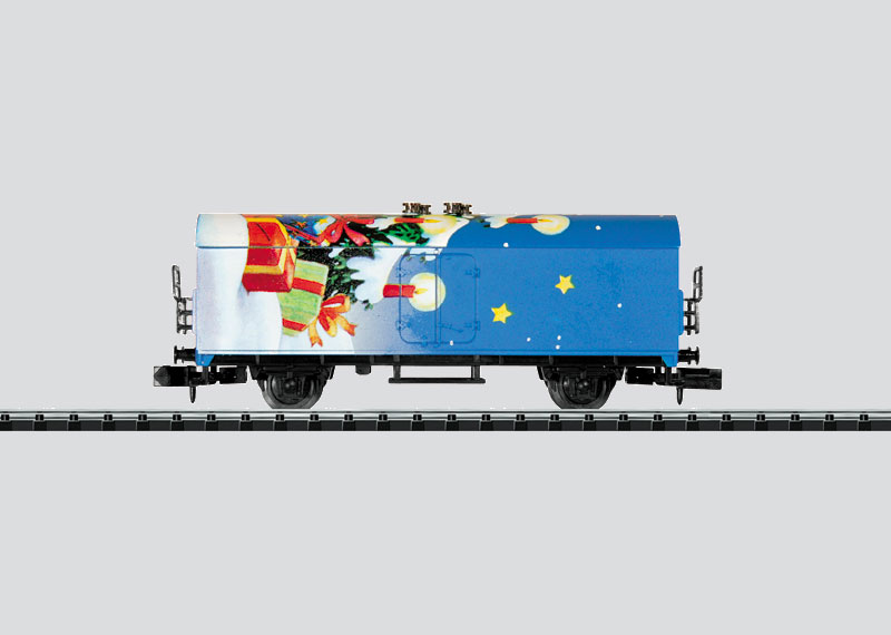 Dieser Wagen zeichnet sich durch ein Weihnachtsmotiv aus, das beide Seitenwände und das Dach mit einschließt. Richtig zur Geltung kommt er erst im mitgelieferten Stiefel am liebevoll geschmückten Weihnachtsbaum.